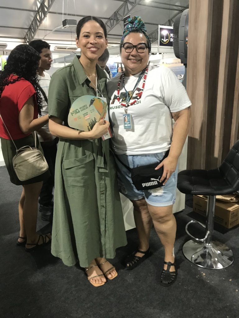 À esquerda, Maely Oliveira, Assistente de Projetos do WMB em Belém do Pará. Ao lado direito, Maely e Sue Anne Costa, Coordenadora de Comunicação do Museu Paraense Emílio Goeldi e responsável pela parceria GLAM-Wiki na instituição.